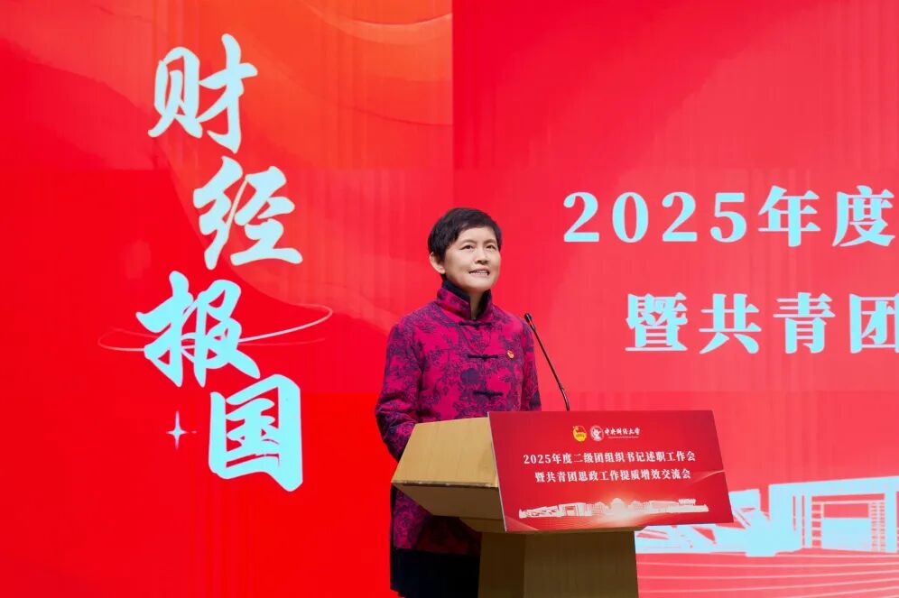 会上,朱凌云代表学校党委向奋斗在青年工作一线的全体团干部队伍致以亲切问候与衷心感谢,充分肯定了我校共青团工作在思想引领、组织建设、品牌打造、服务青年等方面的扎实成效与创新举措,并为与会人员讲授专题团课。她强调,全校共青团工作要始终围绕中心,服务大局,坚守“党旗所指就是团旗所向”的政治遵循,紧扣教育强国战略发展要求,主动适配青年思想观念新变化、成长发展新需求,立足高站位、拓宽大视野、激发新动能,将问题点转化为突破点,把服务触达点拓展至育人覆盖面,不断深化组织、实践、文化、网络“四位一体”育人体系,构建“思想铸魂、组织强基、服务赋能、品牌增效”的共青团育人新格局。全体团干部要着力推进思想、境界、思路、方式“四个转变”,加强锻造政治引领、调查研究、风险斗争、群众工作“四种能力”,坚持以初心坚守、实干担当,团结带领广大中财大青年在学校事业发展与国家战略服务中挺膺担当、奋勇争先,共同开启共青团工作的崭新篇章。
