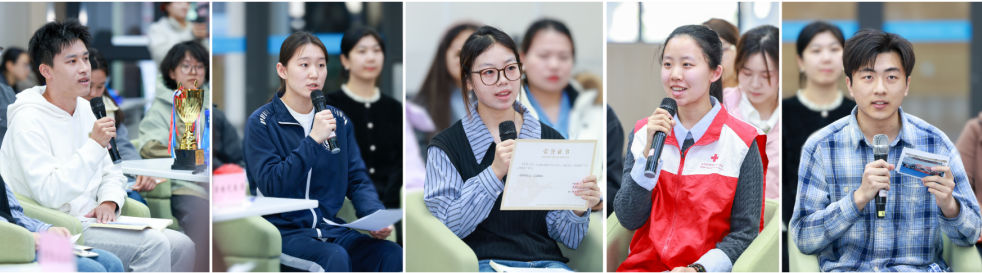来自体育类社团、心理类社团、心理委员、高水平运动员、学生会等班团组织的五位学生代表分享了以体育人、以爱护航的成长故事;篮球社指导教师杨海林、教职工体育类社团代表刘琳琳、心理健康课教师丰怡三位青年教师,围绕健康校园建设作了交流发言。
